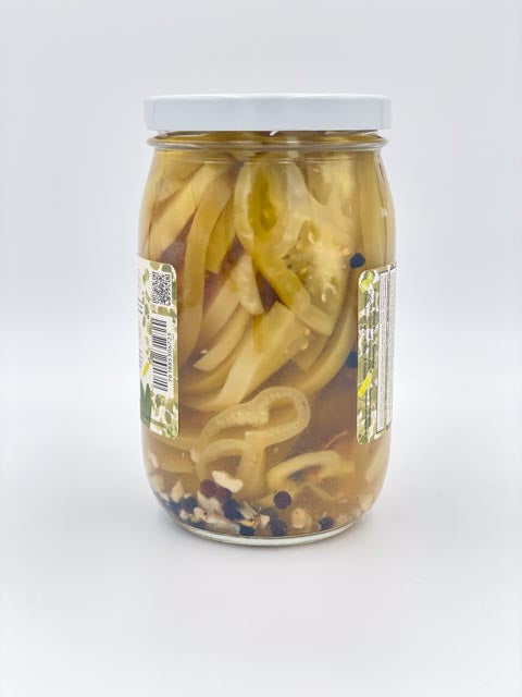 Our pickles are infused with banana peppers, garlic, and a unique spice blend, offering a bold flavor that enhances many dishes.
